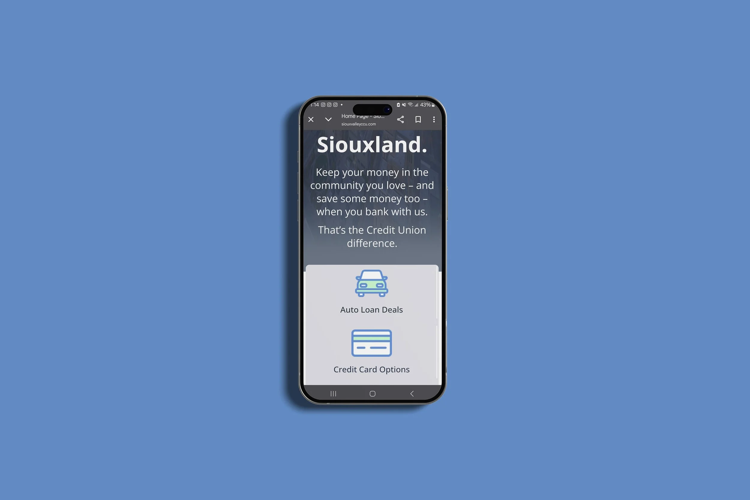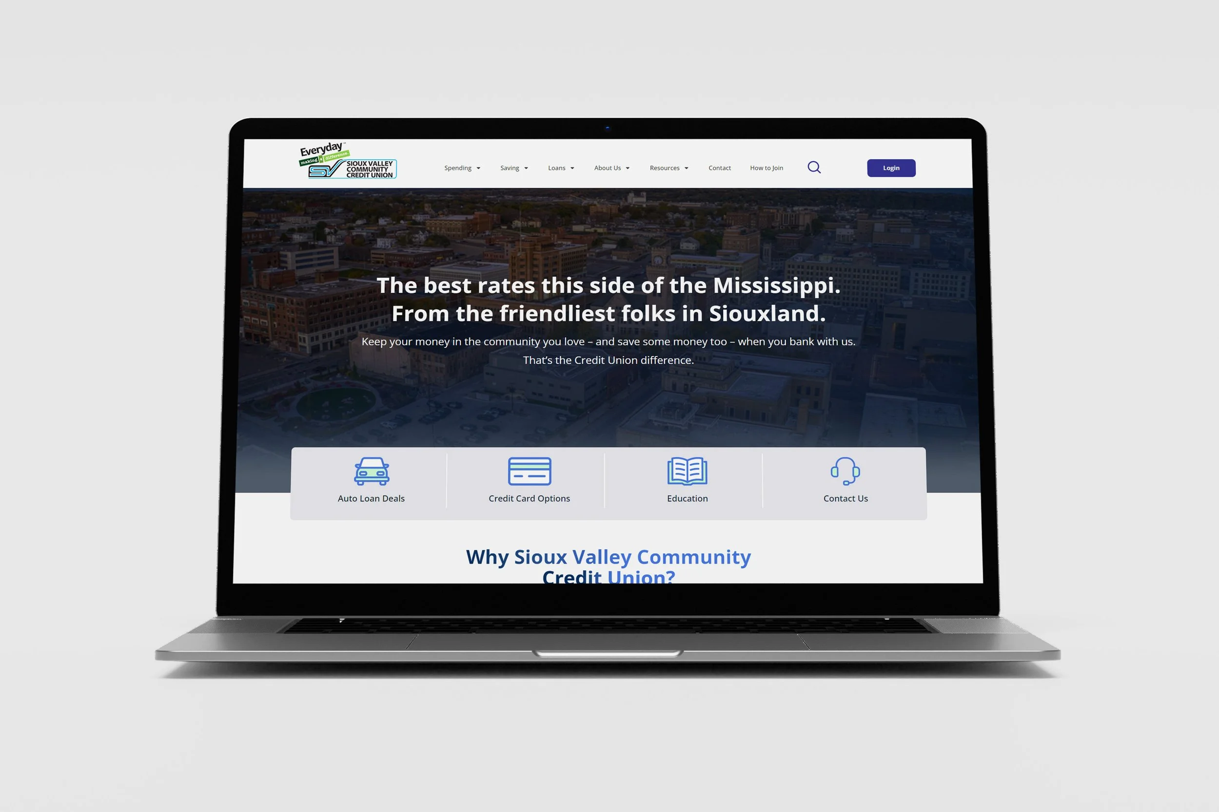 SVCCU is a small but mighty $38M credit union who is quickly expanding throughout Siouxland - a hardworking, rural region in America’s Great Plains. Their old website was woefully outdated, extremely limited in function, and impossible to update. Living in fear of “breaking” their website by making even a minor change, they came to us in search of a modern redesign that was functional, but also represented who they are and where they are going.