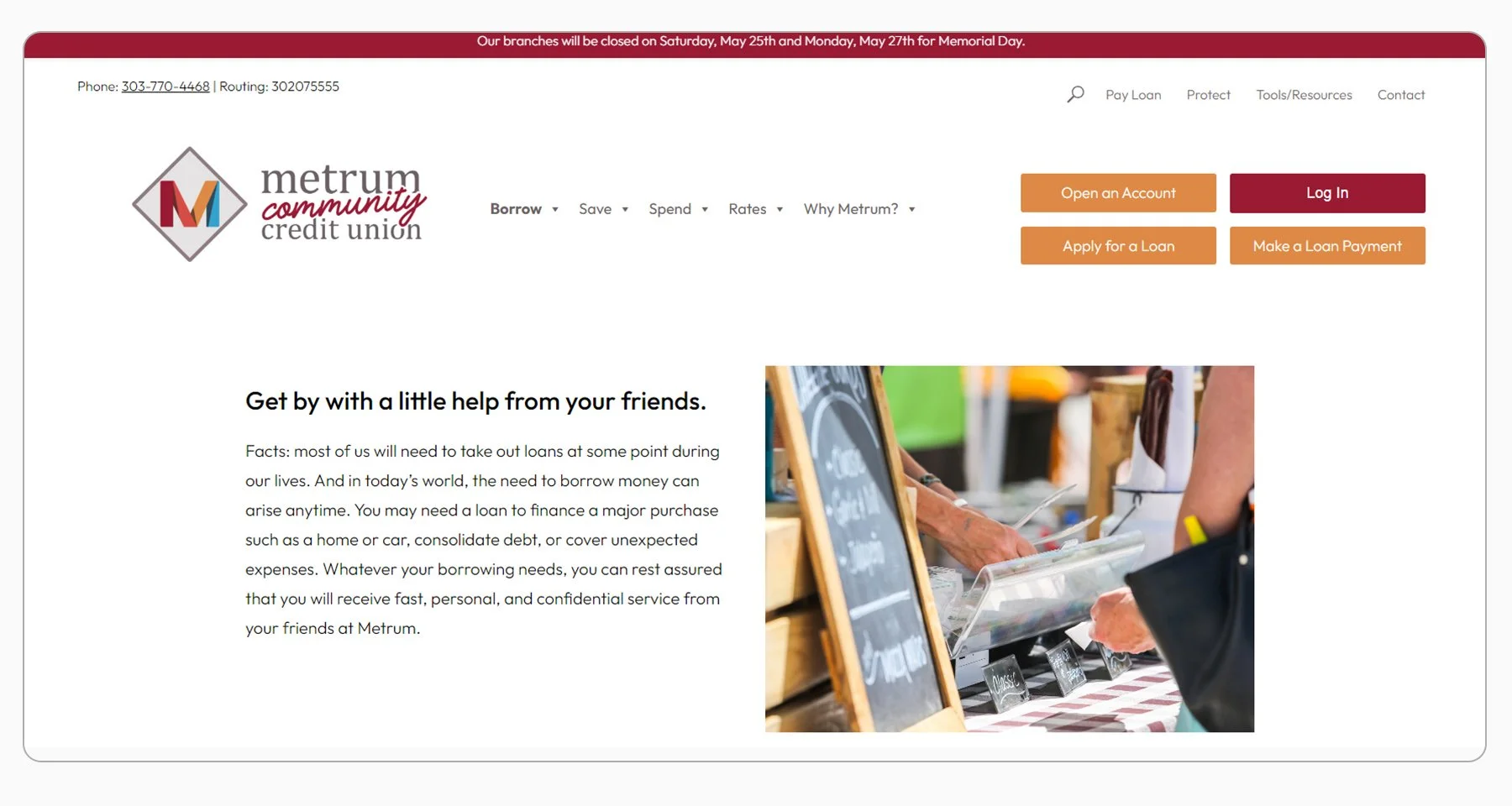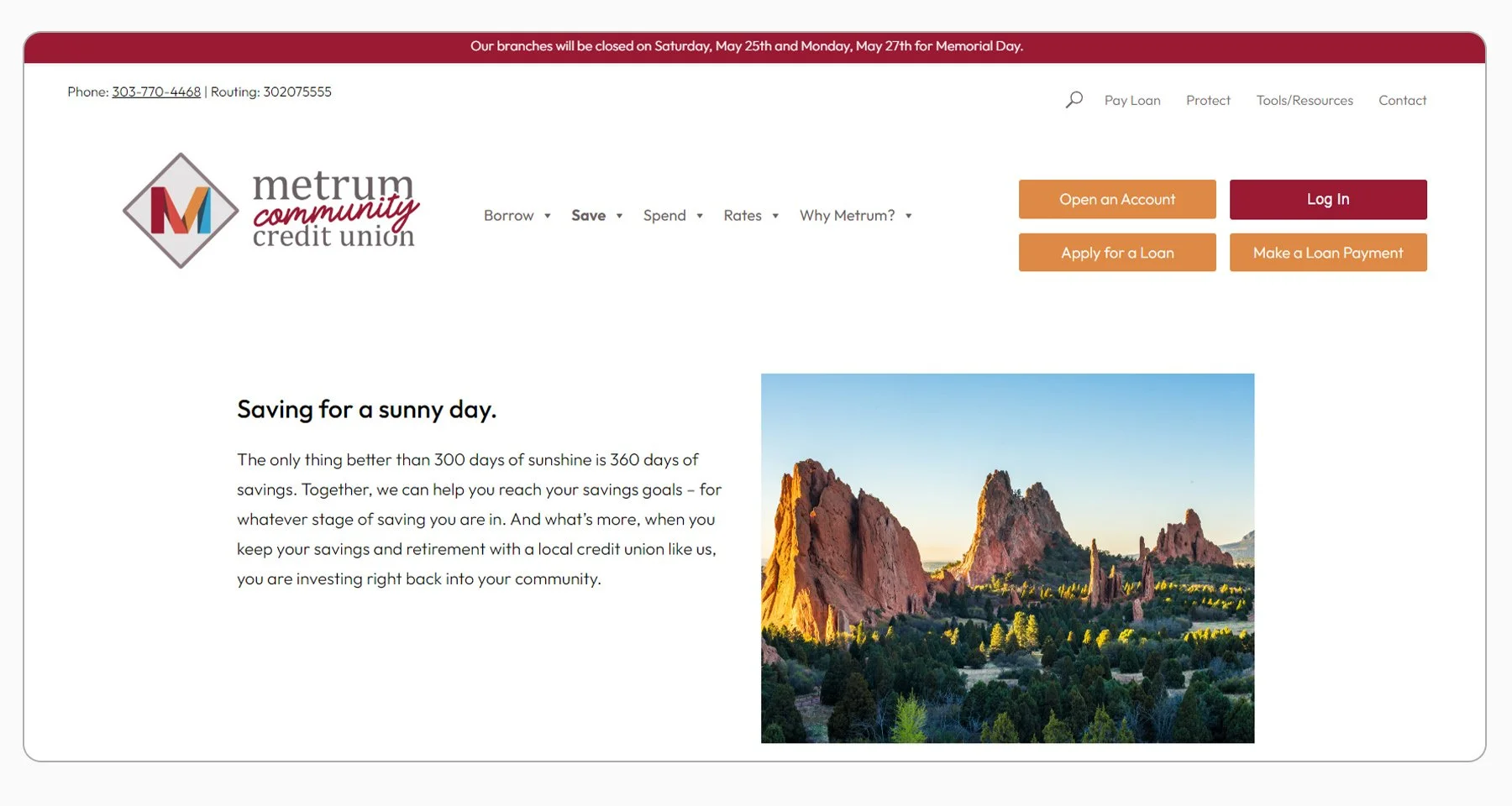 We conducted a nose-to-tail rebrand for Metrum over the course of a year, including bank and credit union competitor research and personas for vastly different member groups. The more affluent, family-oriented Centennial, CO area had very different banking needs than the lower-income industrial workers of Commerce City, CO. Creating a brand that resonated with both was paramount.